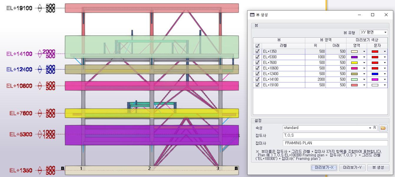 수평부재 Top Down 값 자동 표기