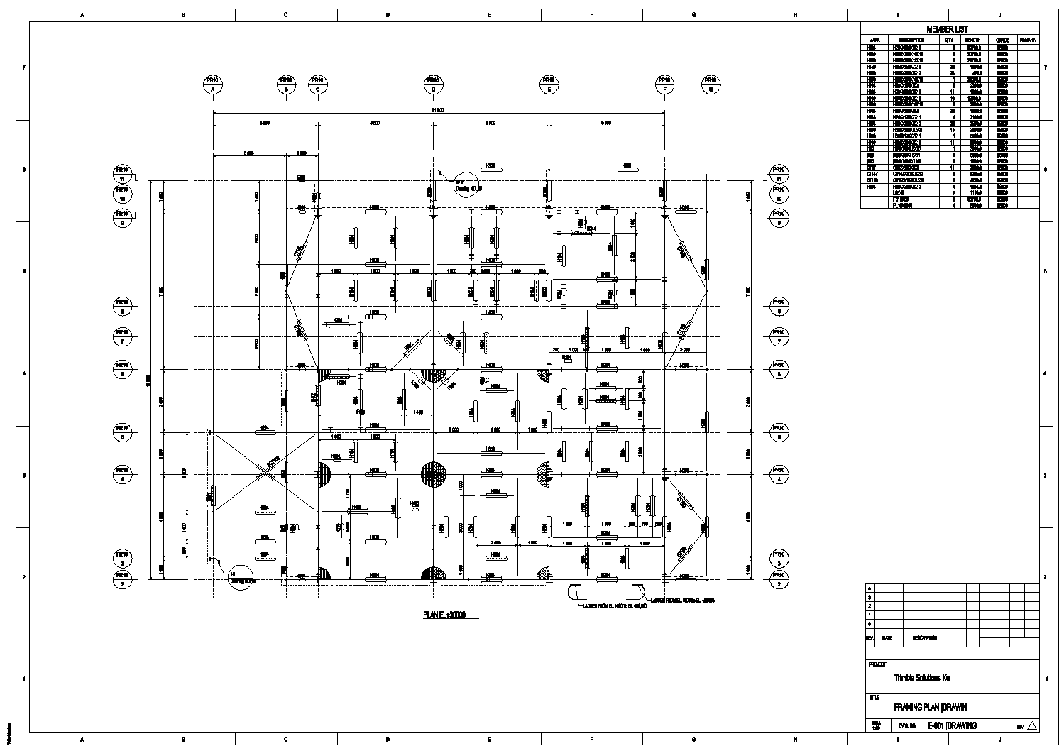 3D구조모델링 정보를 이용하여 구조도면의 자동생성 및 편집을 지원합니다. 구조평면 및 입면도, 지붕평면도, Floor평면도, Column 배치도, 기초구조물 평면도 및 입면도 등을 생성합니다.
