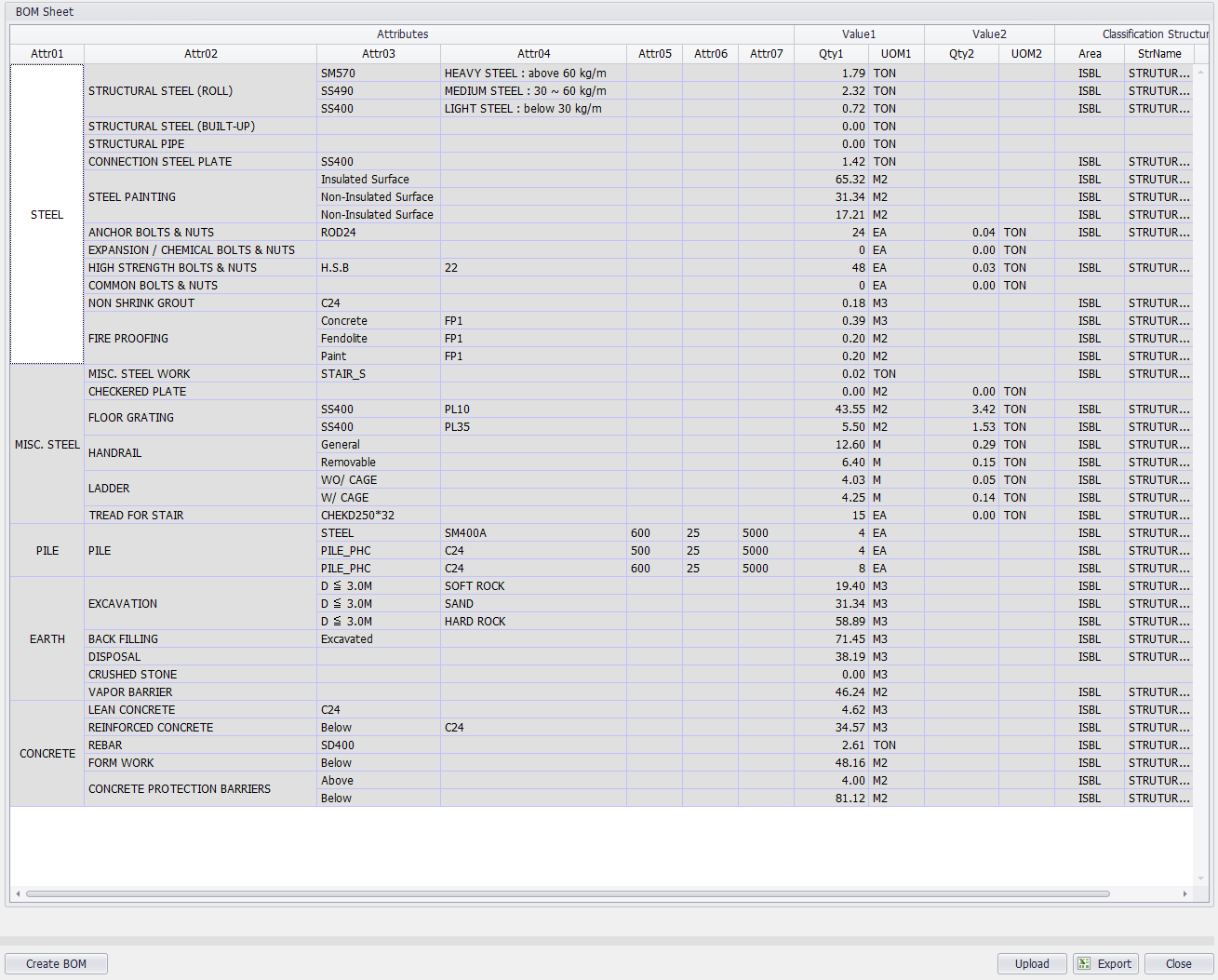 BOM Sheet - 재질, 타입별 중량 및 길이 산출
