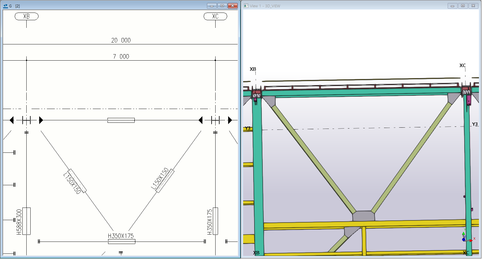 도면(좌)에서 부재 수정 시 3D구조모델(우)에 실시간 반영