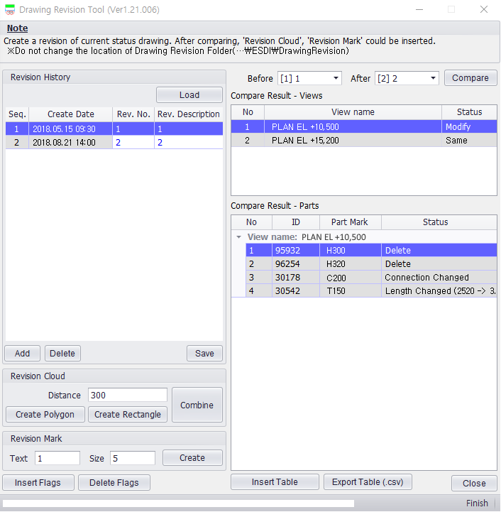기존 작성된 Tekla모델에 변경된 해석파일을 비교하여 변경된 사항을 Tekla모델에 빠르게 적용합니다. 변경 내용은 3D View 및 레포트로 확인하며, 사용자가 적용유무를 결정하여 반영합니다.